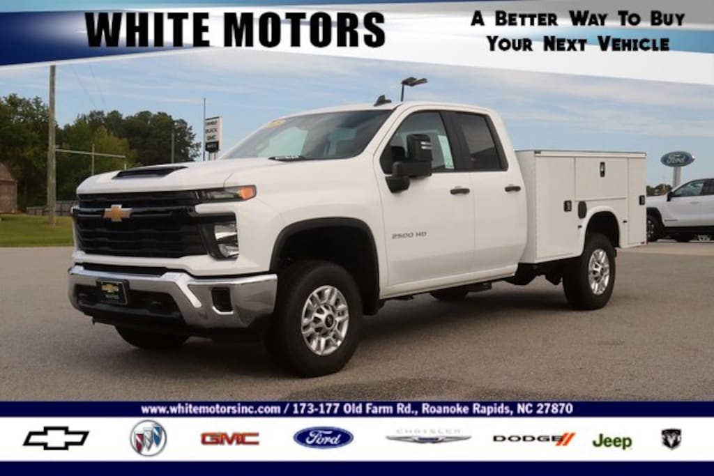 Family owned and operated since 1938.BUY ONLINE-TEXT-EMAIL-CHAT-PHONE. A better way to buy your next vehicle. Where a handshake still means something. Serving Roanoke Rapids, Weldon, Halifax, Scotland Neck, Emporia, South Hill, Franklin, Henderson, Louisburg, Murfreesboro, Littleton, Lake Gaston. We sale nationwide!$3,320 off MSRP! 2025 Chevrolet Silverado 2500HD Work TruckSummit White All Routine Maintenance Up To Date.Equipped with Preferred Equipment Group 1WT (170 Amp Alternator, 2-Speed Electronic Shift Transfer Case, 3.5 Diagonal Monochromatic Display DIC, Black Front Bumper, Black Mirror Caps, Black Rear Bumper, Bluetooth® For Phone, Chevrolet Connected Access Capable, Compass, Electronic Cruise Control w/Set & Resume Speed, HD Rear Vision Camera, High-Visibility Vertical Trailering Mirrors, Locking Tailgate, Manual Tailgate Function w/No EZ Lift, Manual Tilt-Wheel Steering Column, OnStar Services Capable, Power Door Locks, Power Front Windows w/Driver Express Up/Down, Power Rear Windows w/Express Down, Push Button Start, Rear 60/40 Folding Bench Seat (Folds Up), Remote Keyless Entry, Rubberized-Vinyl Floor Covering, Solar Absorbing Tinted Glass, Standard Tailgate, Wi-Fi Hotspot Capable, and Wireless Phone Projection), Suspension Package, WT Convenience Package (Deep-Tinted Glass, Electric Rear-Window Defogger, EZ Lift Power Lock & Release Tailgate, and Heated Vertical Trailering Mirrors), 120-Volt Interior Power Outlet, 17 Machined Aluminum Wheels, 3.73 Rear Axle Ratio, 4-Wheel Disc Brakes, 6 Speakers, 6-Speaker Audio System, 720 Cold-Cranking Amps Heavy-Duty Battery, ABS brakes, Air Conditioning, AM/FM radio, Apple CarPlay/Android Auto, Auto High-beam Headlights, Auto-Dimming Inside Rear-View Mirror, Brake assist, Chrome Front Bumper, Delay-off headlights, Driver door bin, Dual front impact airbags, Dual front side impact airbags, Durabed Pickup Bed, Electronic Stability Control, Emergency communication system: OnStar, Front 40/20/40 Split-Bench Seats w/Lockable Storage, Front anti-roll bar, Front Center Armrest w/Storage, Front License Plate Kit, Front reading lights, Front wheel independent suspension, Fully automatic headlights, Heated & Auto-Dimming Vertical Trailering Mirrors, Illuminated entry, Low tire pressure warning, Occupant sensing airbag, Outside temperature display, Overhead airbag, Overhead console, Panic alarm, Passenger door bin, Passenger vanity mirror, Power steering, Power windows, Premium audio system: Chevrolet Infotainment 3, Radio: Chevrolet Infotainment 3 System, Rear reading lights, Rear step bumper, Remote keyless entry, Speed control, Split folding rear seat, Tachometer, Tilt steering wheel, Traction control, Trip computer, Upfitter Switch Kit (5), Variably intermittent wipers, Vinyl Seat Trim, Voltmeter, and Wheels: 17 Silver Painted Steel. All offers available to qualified buyers with approved financing. Incentives may vary by zip code. Price includes any applicable rebates. Some buyers may not qualify for some incentives. Dealer reserves the right to verify pricing and has the right to refuse pricing as a result of system errors.$500 - Customer Cash. Exp. 11/03/2025
