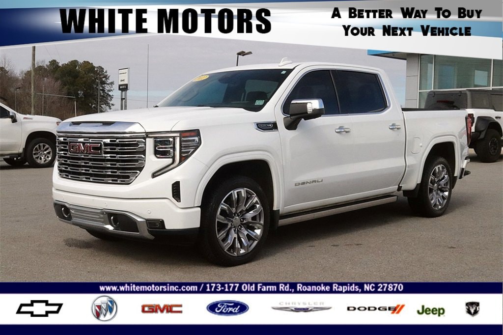 All Routine Maintenance Up To Date. 2022 GMC Sierra 1500 Denali Summit WhiteEquipped with Denali Reserve Package (GMC MultiPro Power Steps, Power Sunroof, Wheel Locks (Set of 4) (LPO), and Wheels: 22 x 9 Painted Aluminum), Preferred Equipment Group 5SA (120-Volt Bed Mounted Power Outlet, 120-Volt Instrument Panel Power Outlet, 170 Amp Alternator, 2 Charge/Data USB Ports Inside Center Console, 2 Type-C Charge-Only Rear USB Ports, 2 USB Ports, Auto-Locking Rear Differential, Auxiliary External Transmission Oil Cooler, Bed View Camera, Chrome Header w/Signature Denali Chrome Grille, Chrome Recovery Hooks, Chrome Wheel To Wheel Assist Steps, Color-Keyed Carpeting Floor Covering, Compass, Deep-Tinted Glass, Electric Rear-Window Defogger, Electrical Steering Column Lock, Floor-Mounted Center Console, Front Rainsensing Wipers, GMC Connected Access Capable, HD Surround Vision, Heated 2nd Row Outboard Seats, Heated Driver & Front Outboard Passenger Seating, Heated Steering Wheel, Heavy-Duty Air Filter, Hill Descent Control, Hitch Guidance w/Hitch View, In-Vehicle Trailering App, Integrated Trailer Brake Controller, Keyless Open & Start, LED Cargo Area Lighting, OnStar & GMC Connected Services Capable, Perimeter Lighting, Power Door Locks, Power Front Passenger Windows w/Express Up/Down, Power Front Windows w/Driver Express Up/Down, Power Rake & Telescoping Steering Column, Power Rear Windows w/Express Down, Power Sliding Rear Window w/Rear Defogger, Premium Bose 7-Speaker Sound System, Push Button Start, Rear Cross Traffic Braking, Rear Pedestrian Detection, Rear Wheelhouse Liners, Remote Vehicle Starter System, SiriusXM w/360L, Spray-On Pickup Bed Liner w/Denali Logo, Steering Wheel Audio Controls, Theft Deterrent System (Unauthorized Entry), Trailer Camera Provisions, Trailer Side Blind Zone Alert, Ultrasonic Front & Rear Park Assist, Universal Home Remote, Ventilated Driver & Front Passenger Seats, Wi-Fi Hotspot Capable, Wireless Charging, and Wireless Phone Projection), Technology Package (Adaptive Cruise Control, Automatic Emergency Braking, Multicolor 15 Diagonal Head-Up Display, and Rear Camera Mirror), Trailering Package (Hitch Guidance), 10-Way Power Driver Seat Adjuster w/Lumbar, 10-Way Power Passenger Seat Adjuster w/Lumbar, 3.23 Rear Axle Ratio, 4-Wheel Disc Brakes, 7 Speakers, ABS brakes, Adaptive suspension, Air Conditioning, Alloy wheels, AM/FM radio: SiriusXM with 360L, Apple CarPlay/Android Auto, Auto High-beam Headlights, Auto-dimming door mirrors, Auto-dimming Rear-View mirror, Automatic temperature control, Body Color Wheel Arch Moldings (LPO), Brake assist, Buckle to Drive, Bumpers: body-color, Delay-off headlights, Denali Premium Suspension w/Adaptive Ride Control, Driver door bin, Driver Memory, Driver vanity mirror, Dual front impact airbags, Dual front side impact airbags, Electronic Stability Control, Emergency communication system: OnStar and GMC Connected Services capable, Following Distance Indicator, Forge Perforated Leather Seat Trim, Forward Collision Alert, Front anti-roll bar, Front Bucket Seats, Front Center Armrest, Front dual zone A/C, Front fog lights, Front Pedestrian Braking, Front reading lights, Front wheel independent suspension, Fully automatic headlights, Garage door transmitter, Genuine wood console insert, Genuine wood dashboard insert, Genuine wood door panel insert, Heated door mirrors, Heated front seats, Heated rear seats, Heated steering wheel, Illuminated entry, IntelliBeam Automatic High Beam On/Off, Lane Keep Assist w/Lane Departure Warning, Low tire pressure warning, Memory seat, Navigation System, Not Equipped w/Dynamic Fuel Management, Not Equipped w/Front & Rear Park Assist, Not Equipped w/Steering Column Lock, Occupant sensing airbag, Outside temperature display, Overhead airbag, Overhead console, Panic alarm, Passenger door bin, Passenger vanity mirror, Power door mirrors, Power driver seat, Power passenger seat, Power steering, Power windows, Premium audio sys