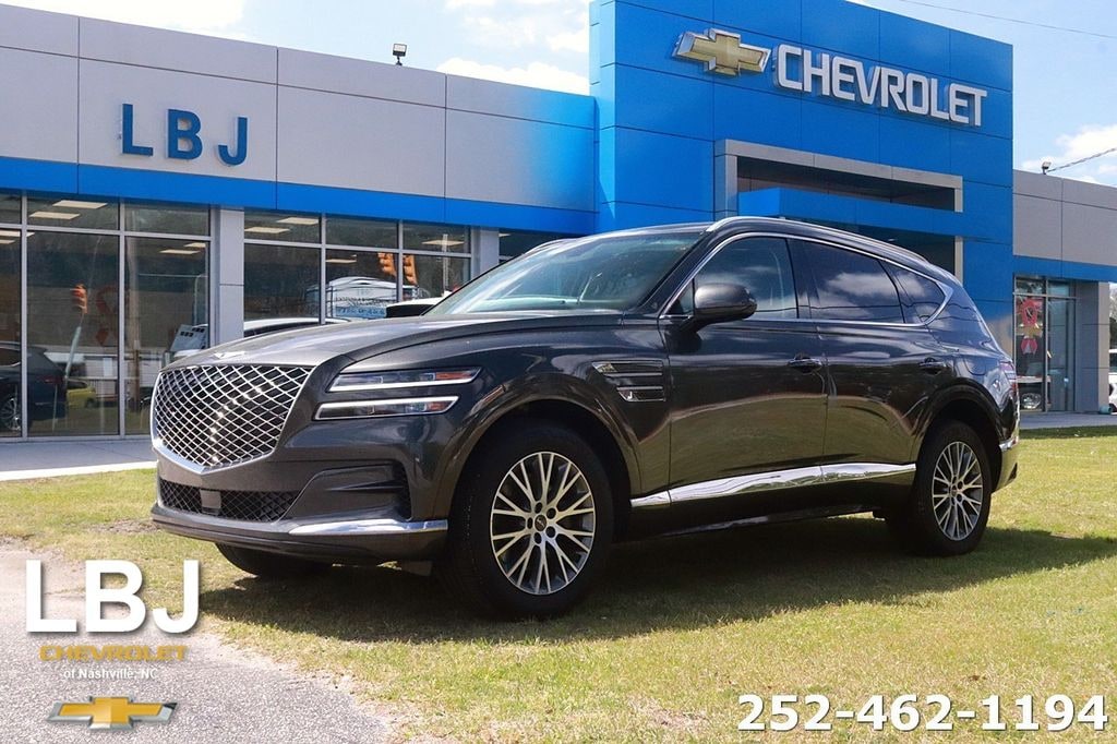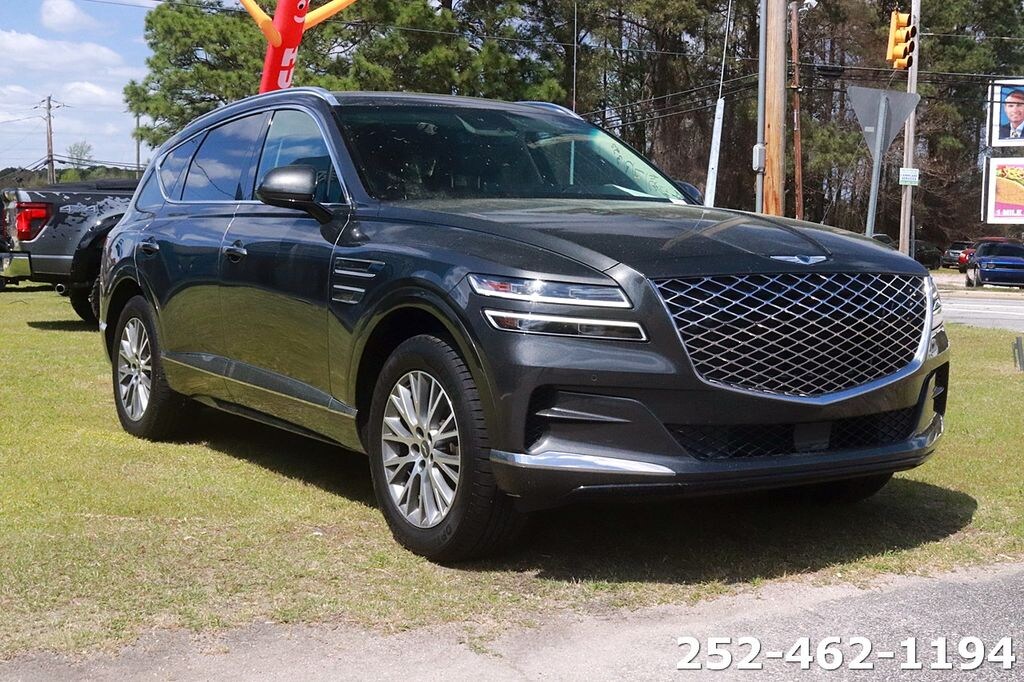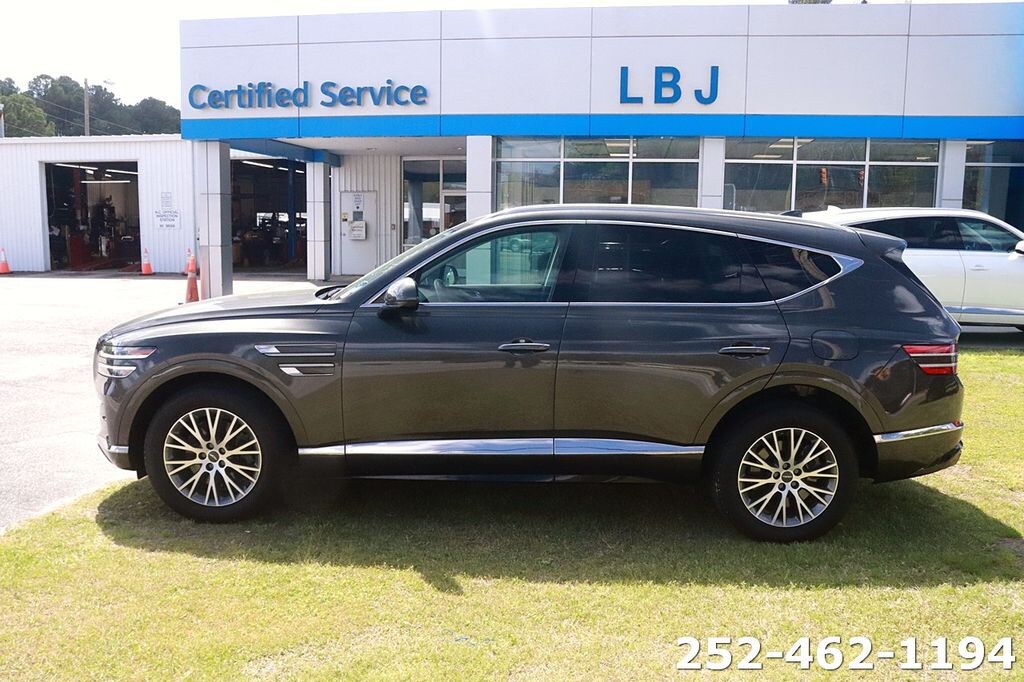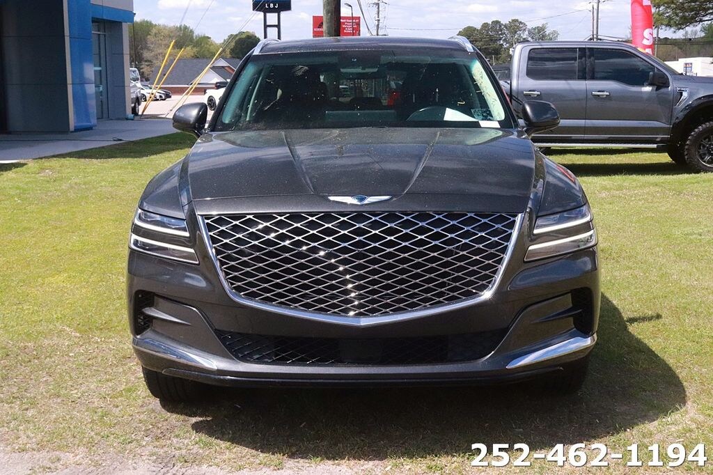 Equipped with Option Group 01, 12 Speakers, 4-Wheel Disc Brakes, 4.363 Axle Ratio, ABS brakes, Air Conditioning, Alloy wheels, AM/FM radio: SiriusXM, Android Auto & Apple CarPlay, Anti-whiplash front head restraints, Auto High-beam Headlights, Auto tilt-away steering wheel, Auto-dimming door mirrors, Auto-dimming Rear-View mirror, Auto-leveling suspension, Automatic temperature control, Brake assist, Bumpers: body-color, Compass, Delay-off headlights, Driver door bin, Driver vanity mirror, Dual front impact airbags, Dual front side impact airbags, Electronic Stability Control, Emergency communication system: Genesis Connected Services, Exterior Parking Camera Rear, Four wheel independent suspension, Front anti-roll bar, Front Bucket Seats, Front Center Armrest, Front dual zone A/C, Front reading lights, Fully automatic headlights, Garage door transmitter: HomeLink, Genuine wood console insert, Genuine wood dashboard insert, Genuine wood door panel insert, Heated door mirrors, Heated Front Bucket Seats, Heated front seats, Heated steering wheel, Illuminated entry, Knee airbag, Leather steering wheel, Leatherette Seating Surfaces, Low tire pressure warning, Memory seat, Navigation System, Occupant sensing airbag, Outside temperature display, Overhead airbag, Overhead console, Panic alarm, Passenger door bin, Passenger vanity mirror, Power door mirrors, Power driver seat, Power Liftgate, Power passenger seat, Power steering, Power windows, Radio data system, Radio:14.5" Navigation System w/AM/FM/HD Radio, Rain sensing wipers, Rear air conditioning, Rear anti-roll bar, Rear reading lights, Rear seat center armrest, Rear side impact airbag, Rear window defroster, Rear window wiper, Remote keyless entry, Security system, Speed control, Speed-sensing steering, Speed-Sensitive Wipers, Split folding rear seat, Spoiler, Steering wheel memory, Steering wheel mounted audio controls, Tachometer, Telescoping steering wheel, Tilt steering wheel, Traction control, Trip computer, Turn signal indicator mirrors, Variably intermittent wipers, and Wheels: 19" x 8.5J Medium Metallic Gray Alloy